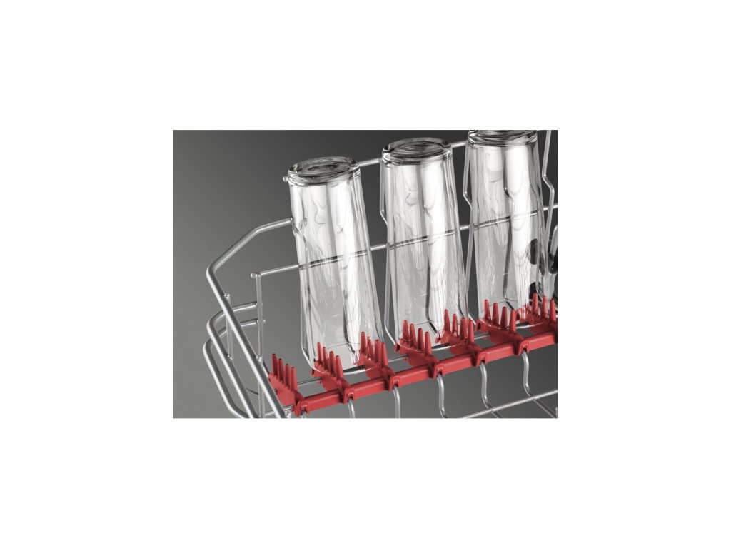 Křehké sklo v bezpečíI extra výkonné myčky nádobí umí poskytnout sklu jemnou péči. Držáky SoftGrip v horním koši drží sklenice šetrně, a přitom bezpečně na svém místě. Gumové hroty SoftSpikes zabraňují jejich poškrábání nebo poškození.