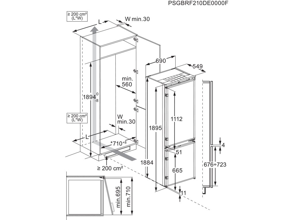| Instalace: | Vestavná se spřaženými dveřmi |