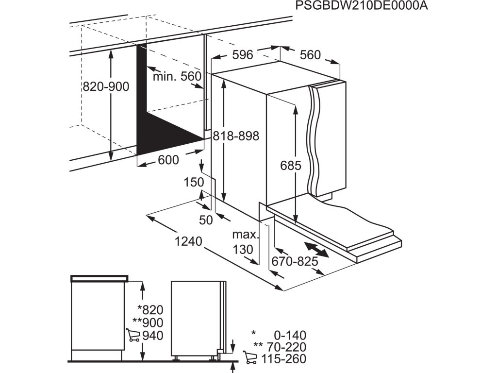 | Prostor pro instalaci VxŠxH (mm): | 820-900x600x560 |