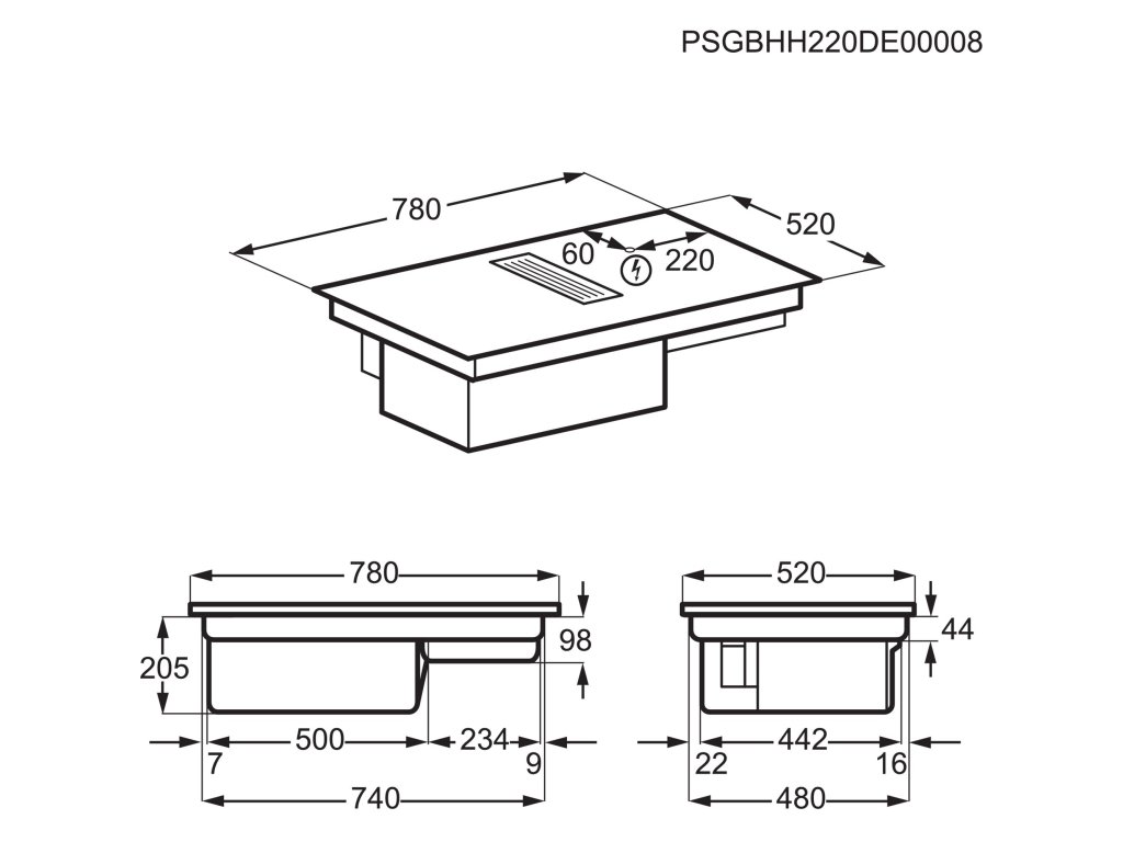 Electrolux Kombinace varného panelu a odsavače Bridge s integrovaným odsavačem - model KCC83443 Autorizovaný prodejce Electrolux