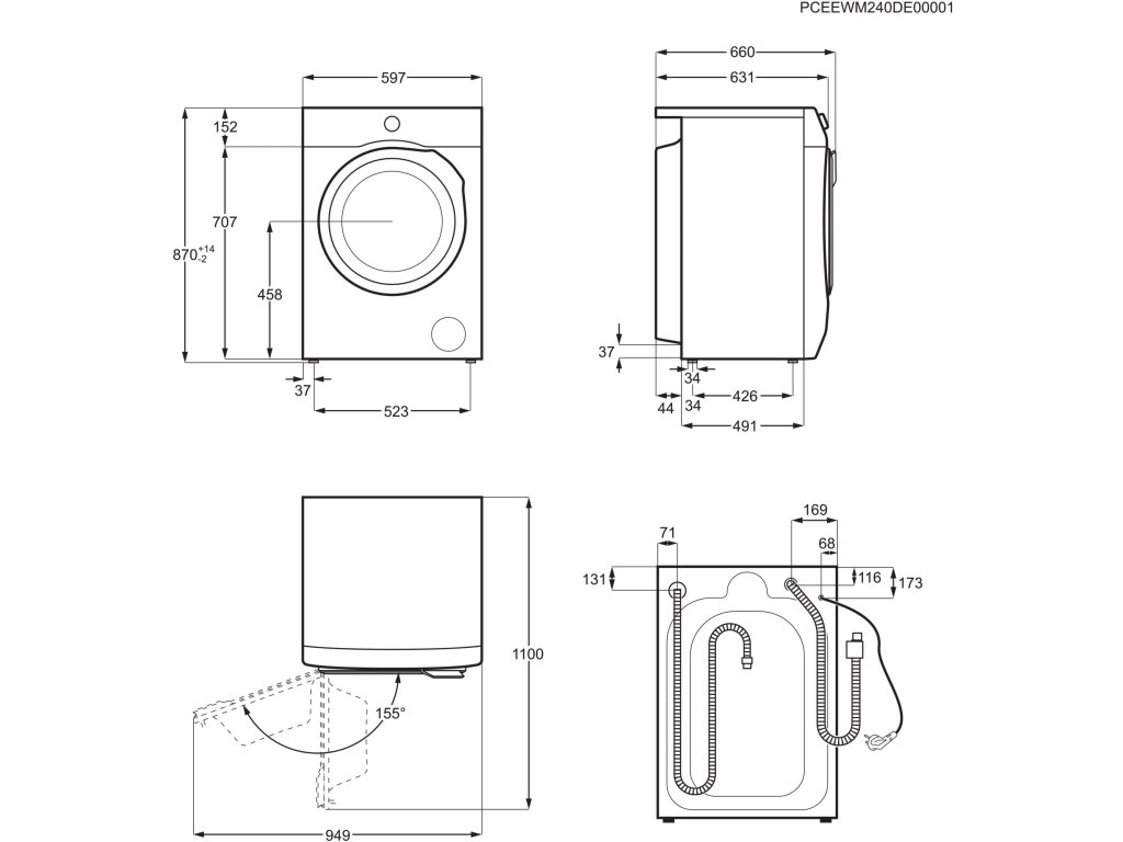 | Maximální hloubka včetně dvířek (mm): | 660 |