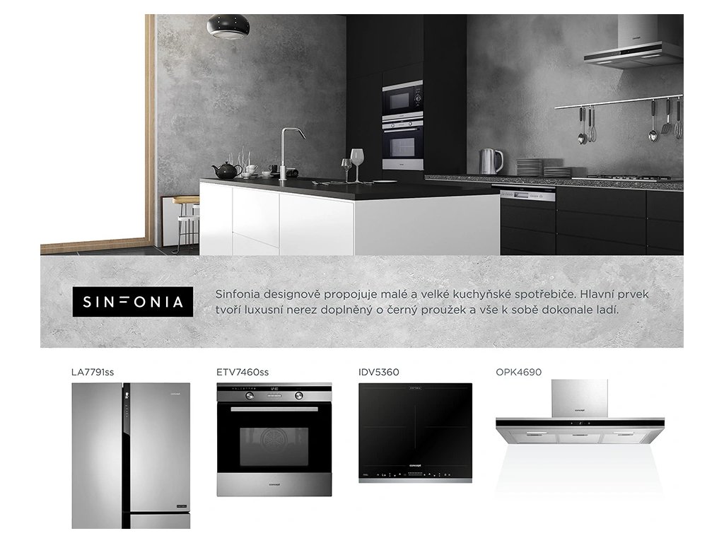 Elektrická multifunkční trouba ETV7460ss je součástí designové linie Sinfonia, která propojuje velké i malé kuchyňské spotřebiče tak, aby v kuchyni tvořily jednotný celek. Je zpracovaná v moderním nerezovém provedení v kombinaci s černým sklem. Disponuje elegantním ovládacím „slim“ panelem, který ji přidává na celkové atraktivitě.